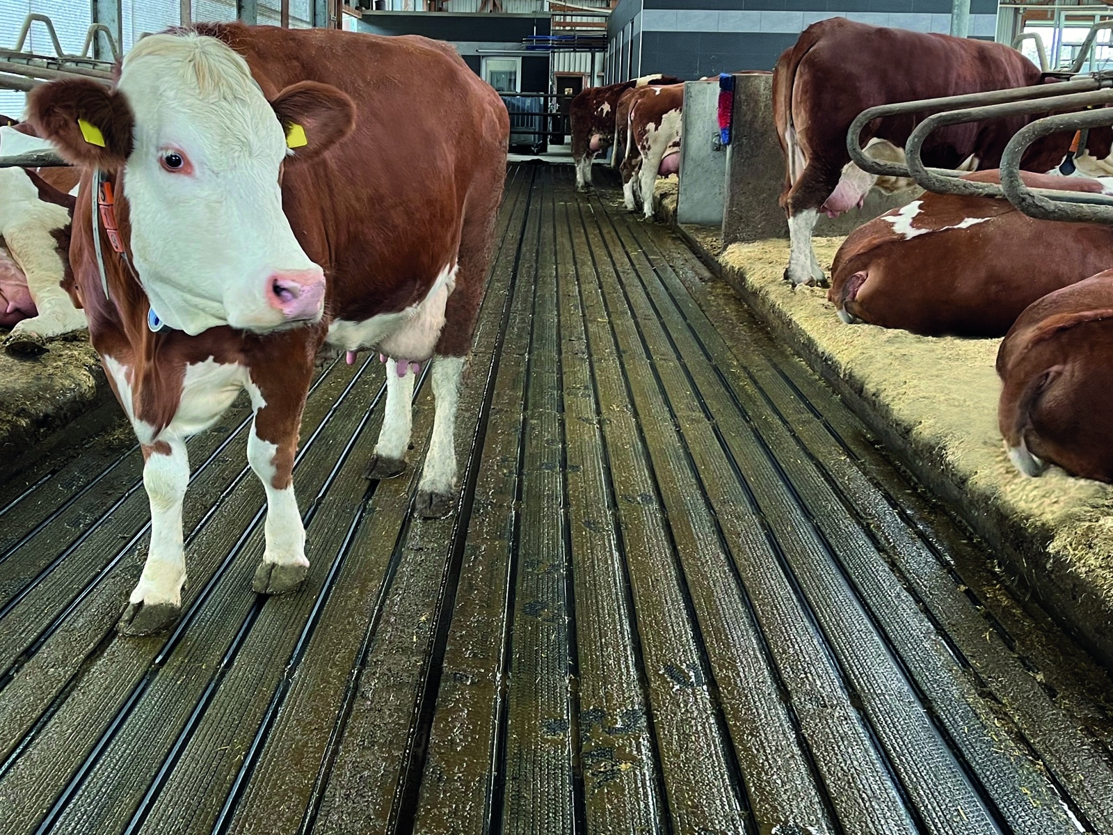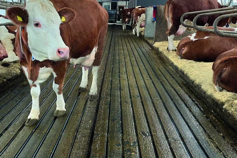 Das Geheimnis liegt im durchdachten Aufbau: Die sanft gewölbte, tiergerecht weiche Auftrittsfläche zwischen den Rinnen ist mit einem 6 %-igen Gefälle und einer leichten Profilierung ausgestattet. So wird Urin schnell und zuverlässig abgeleitet, während die Klauen trocken bleiben. Das Volumen der Rinnen ist so bemessen, dass bei einer Schieberfrequenz von zwei Stunden ausreichend Flüssigkeit aufgenommen werden kann.