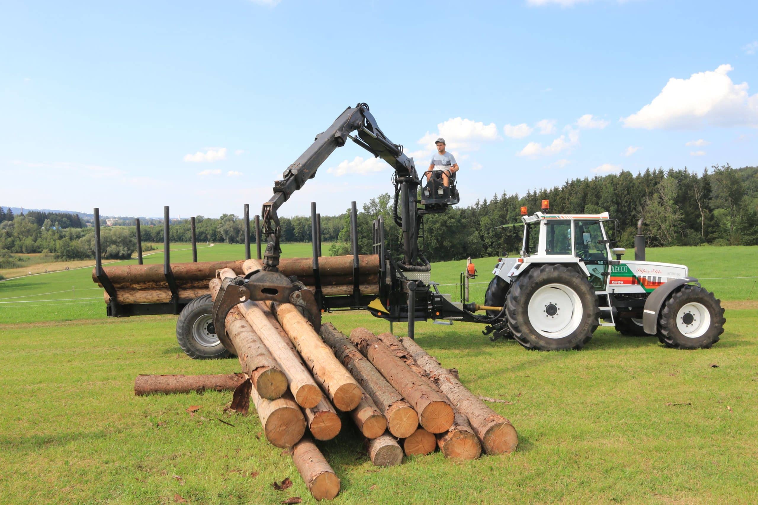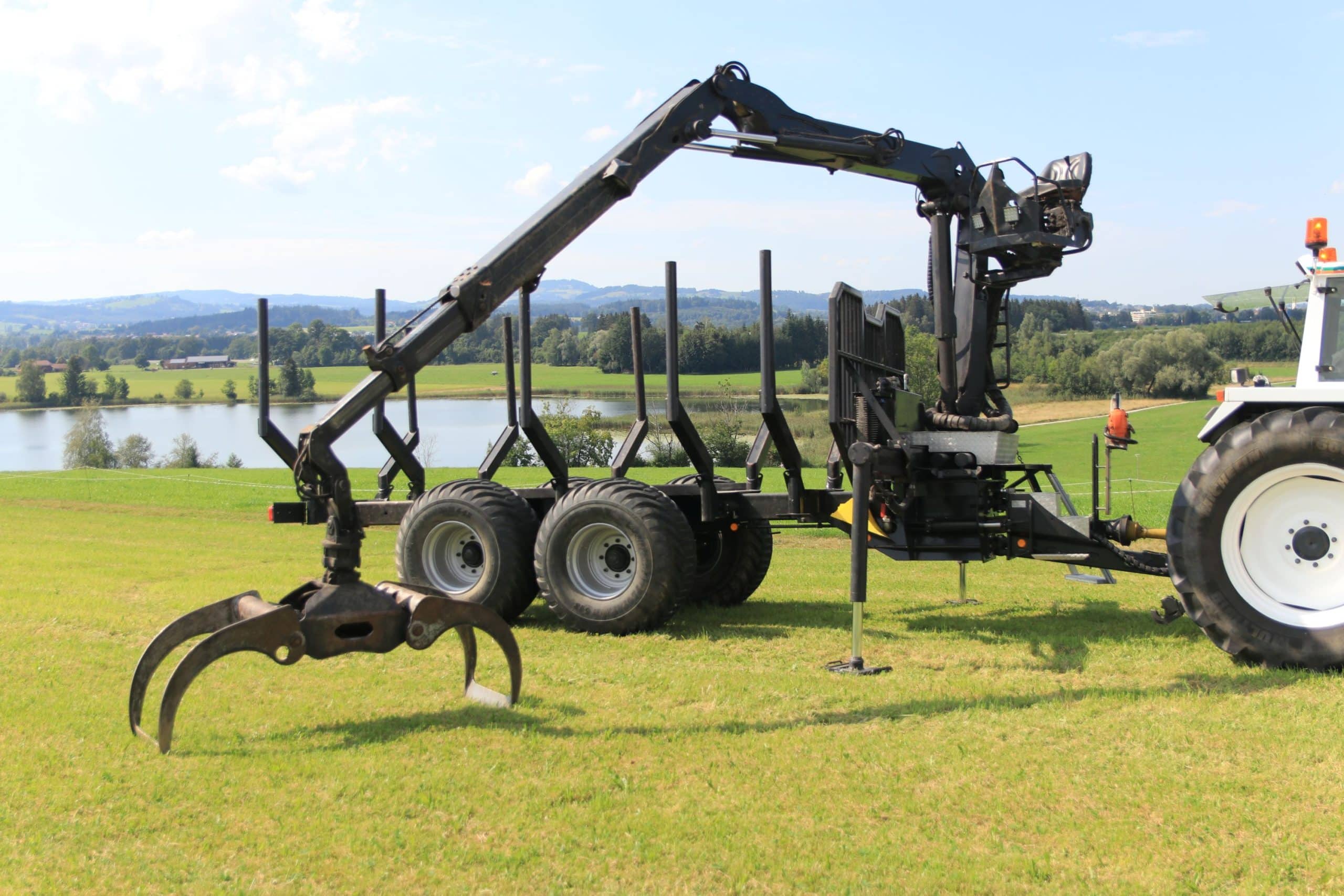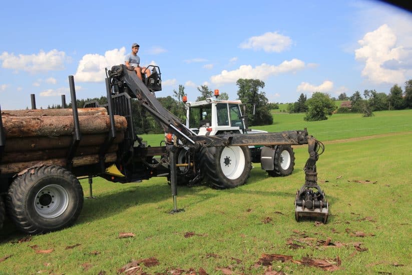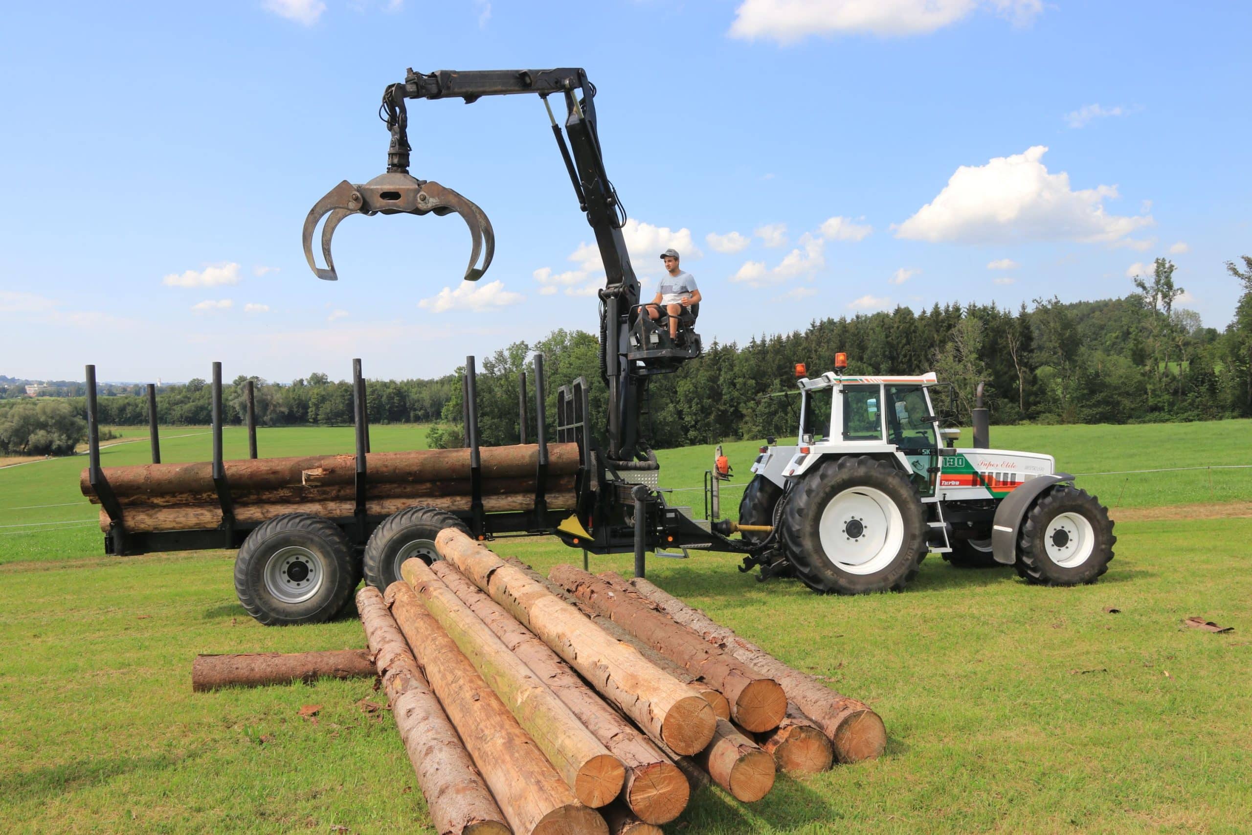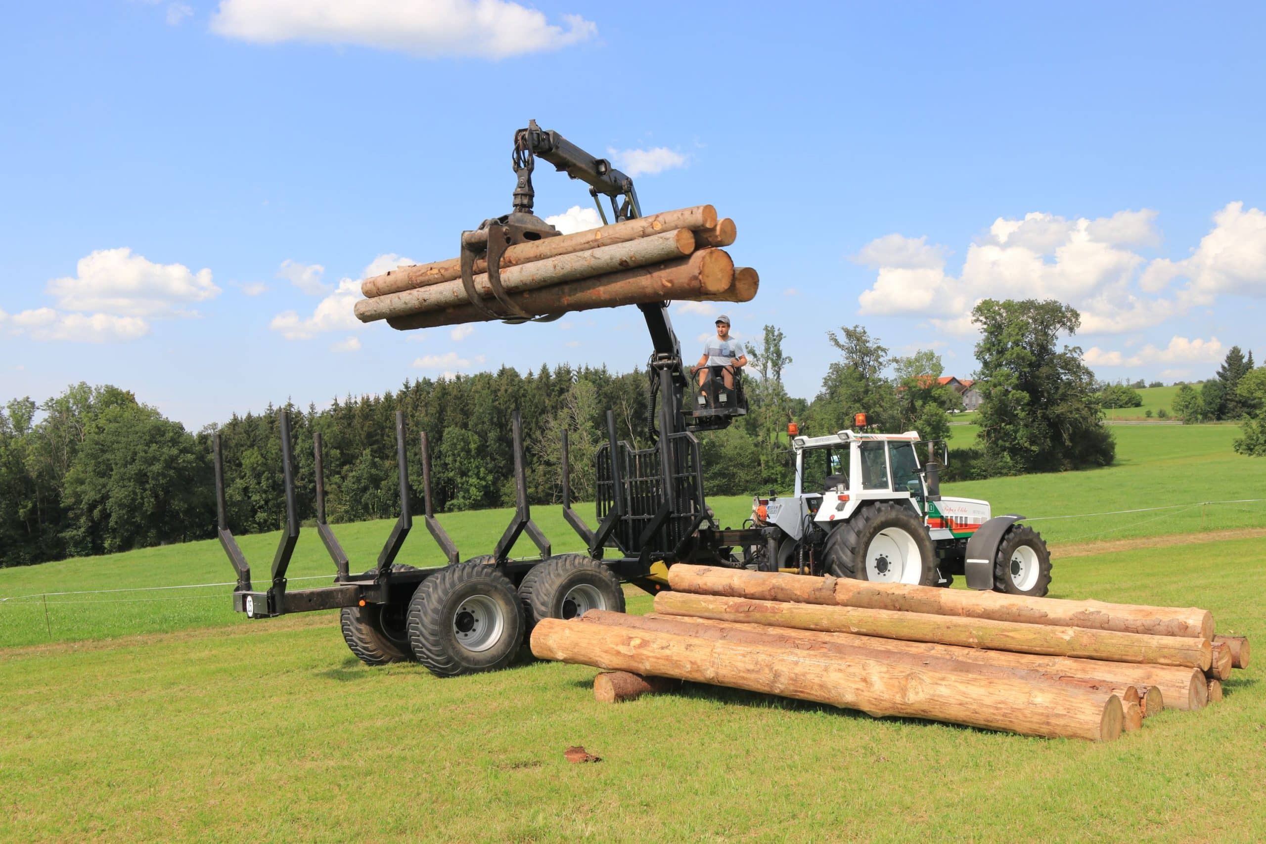 Der Bedarf an einem eigenen Rückewagen entstand bei Maximilian Bertele über Umwege. Der Landwirtschaftsmeister betreibt zusammen mit seinen Eltern und seiner Freundin einen Milchviehbetrieb in Sulzberg, Allgäu. 2020 hat die Familie ein kleines Nahwärmekraftwerk mit Hackschnitzelheizung gebaut, das neun Wohneinheiten versorgt. „Früher haben wir das Holz mit dem Frontlader auf den Kipper geladen und heim transportiert. Für größere Mengen war das aber unpraktisch“, blickt Bertele zurück. Dann folgte die Idee, sich einen Krananhänger zuzulegen. Doch gute gebrauchte Rückewagen in seiner Wunschausstattung gab es nicht.