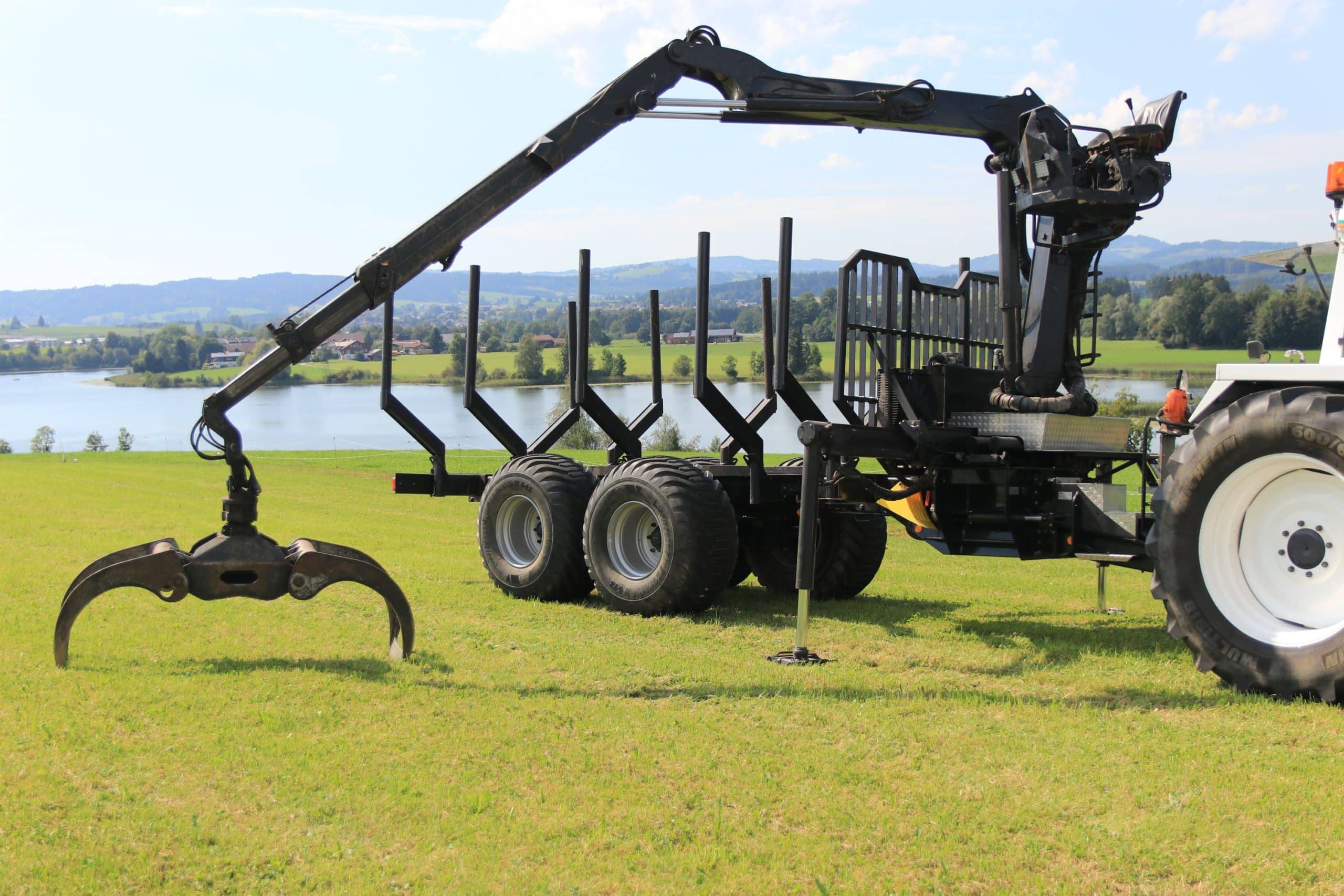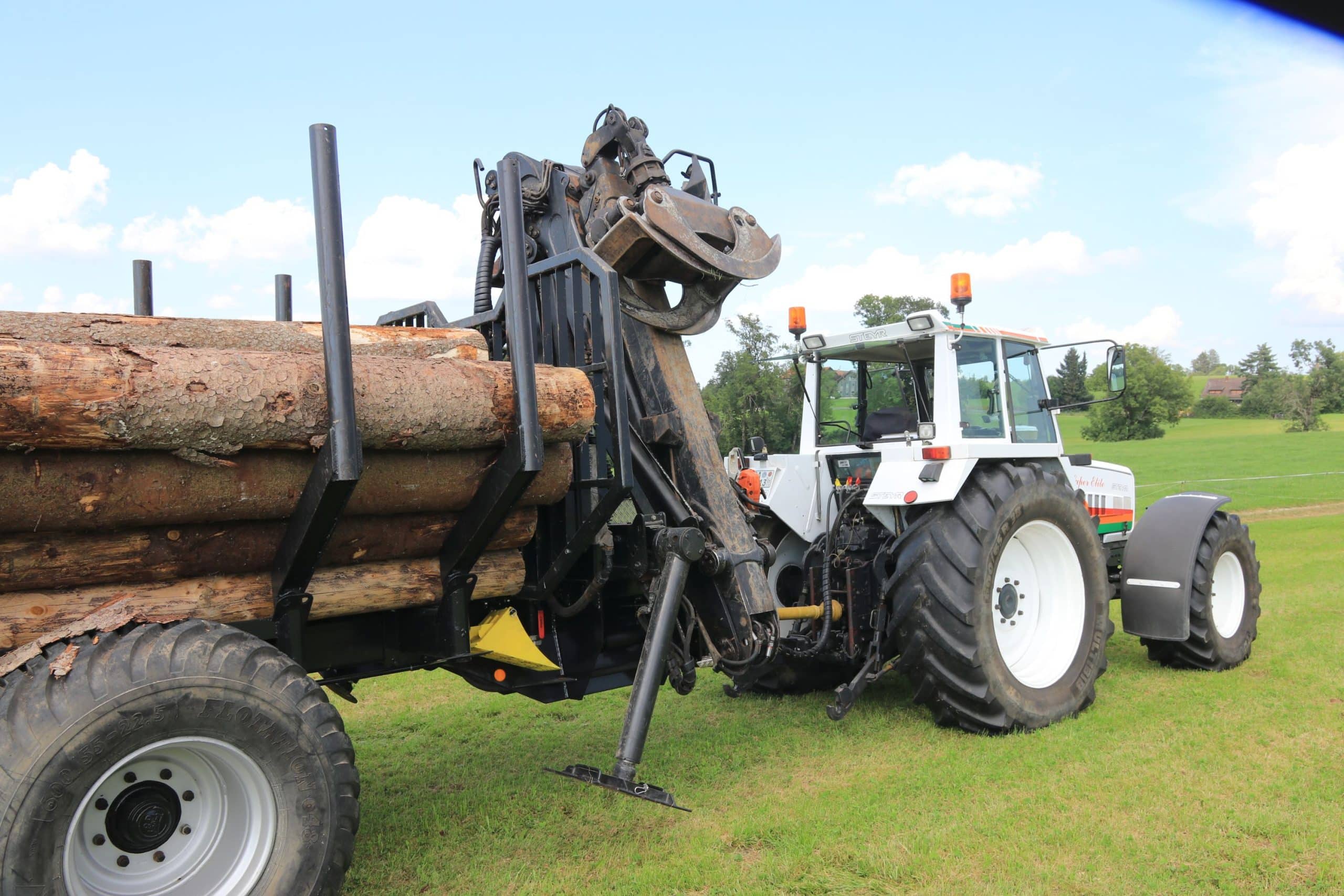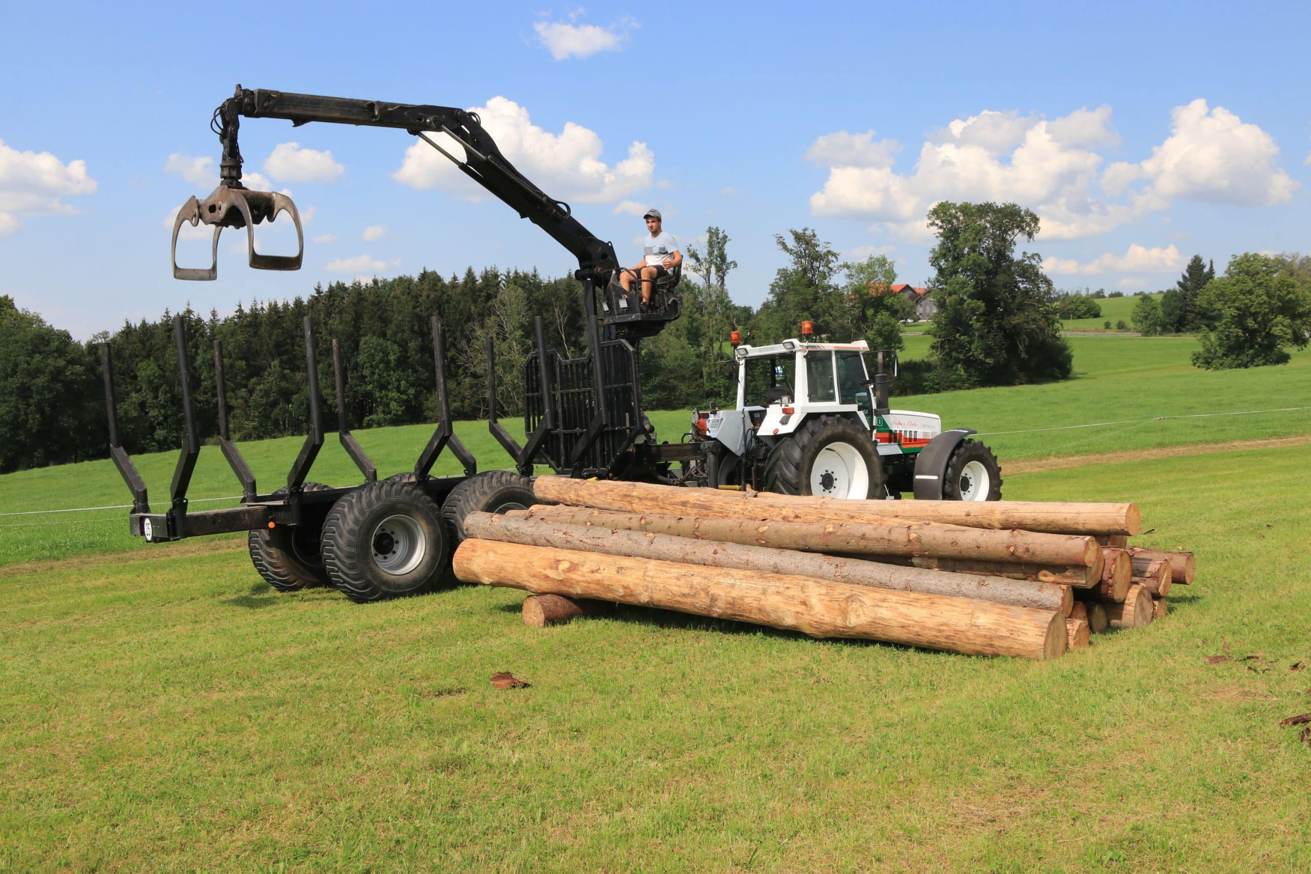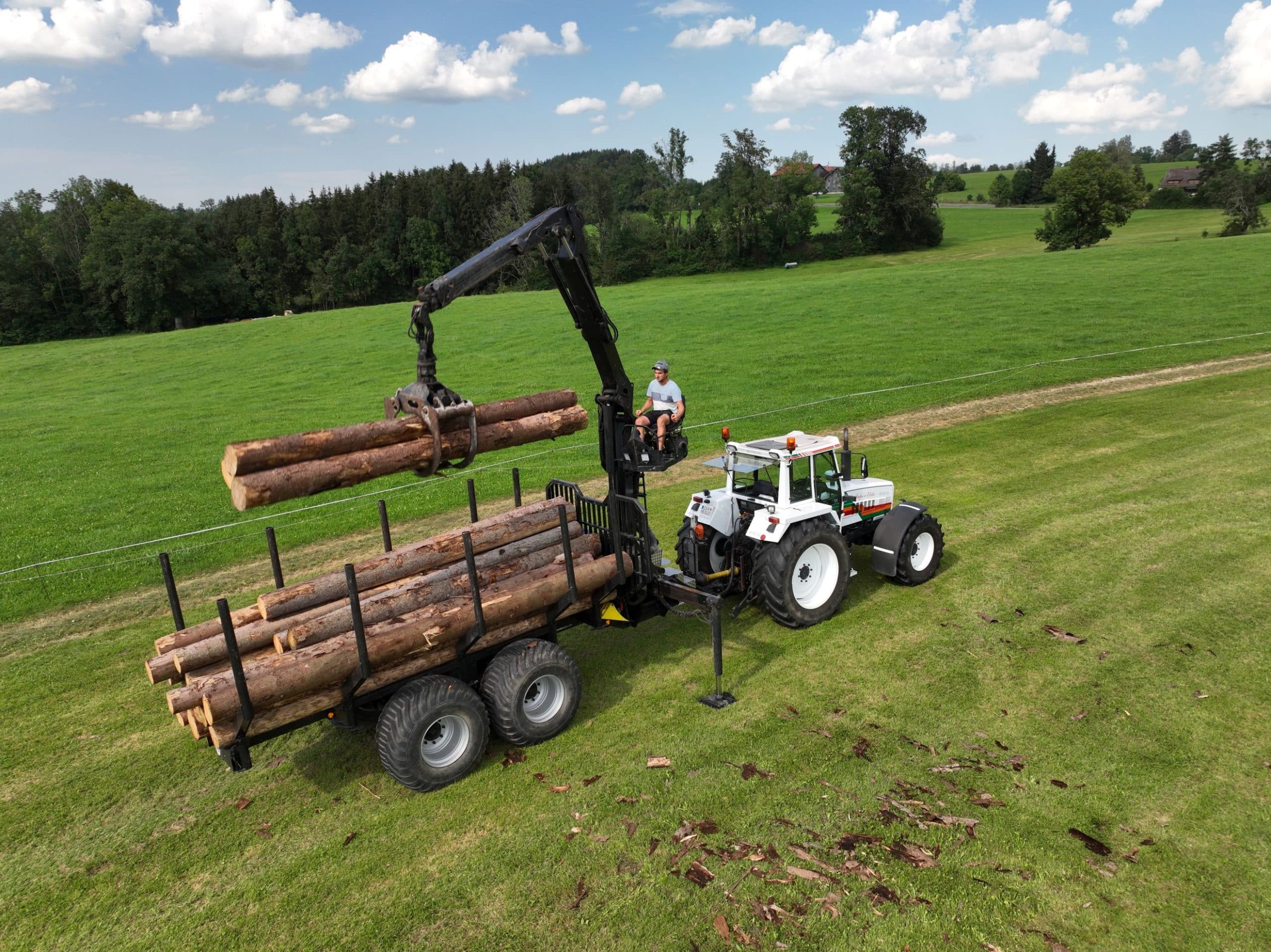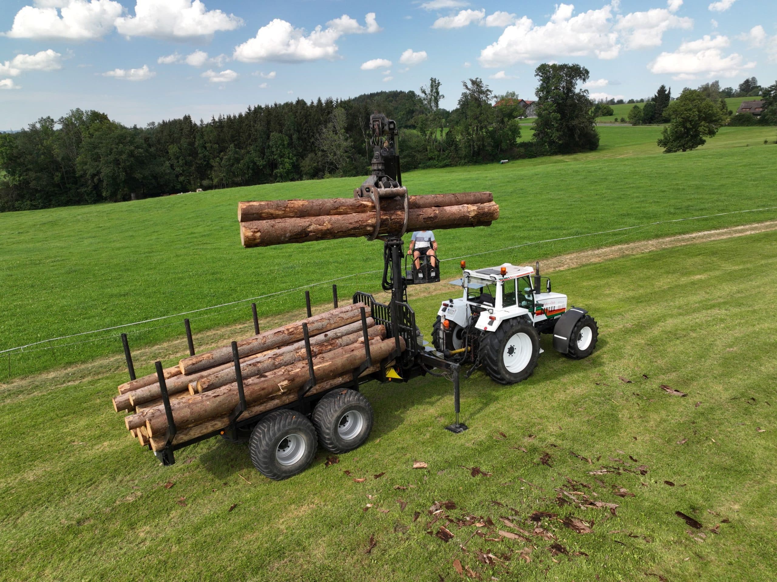 Der Bedarf an einem eigenen Rückewagen entstand bei Maximilian Bertele über Umwege. Der Landwirtschaftsmeister betreibt zusammen mit seinen Eltern und seiner Freundin einen Milchviehbetrieb in Sulzberg, Allgäu. 2020 hat die Familie ein kleines Nahwärmekraftwerk mit Hackschnitzelheizung gebaut, das neun Wohneinheiten versorgt. „Früher haben wir das Holz mit dem Frontlader auf den Kipper geladen und heim transportiert. Für größere Mengen war das aber unpraktisch“, blickt Bertele zurück. Dann folgte die Idee, sich einen Krananhänger zuzulegen. Doch gute gebrauchte Rückewagen in seiner Wunschausstattung gab es nicht.