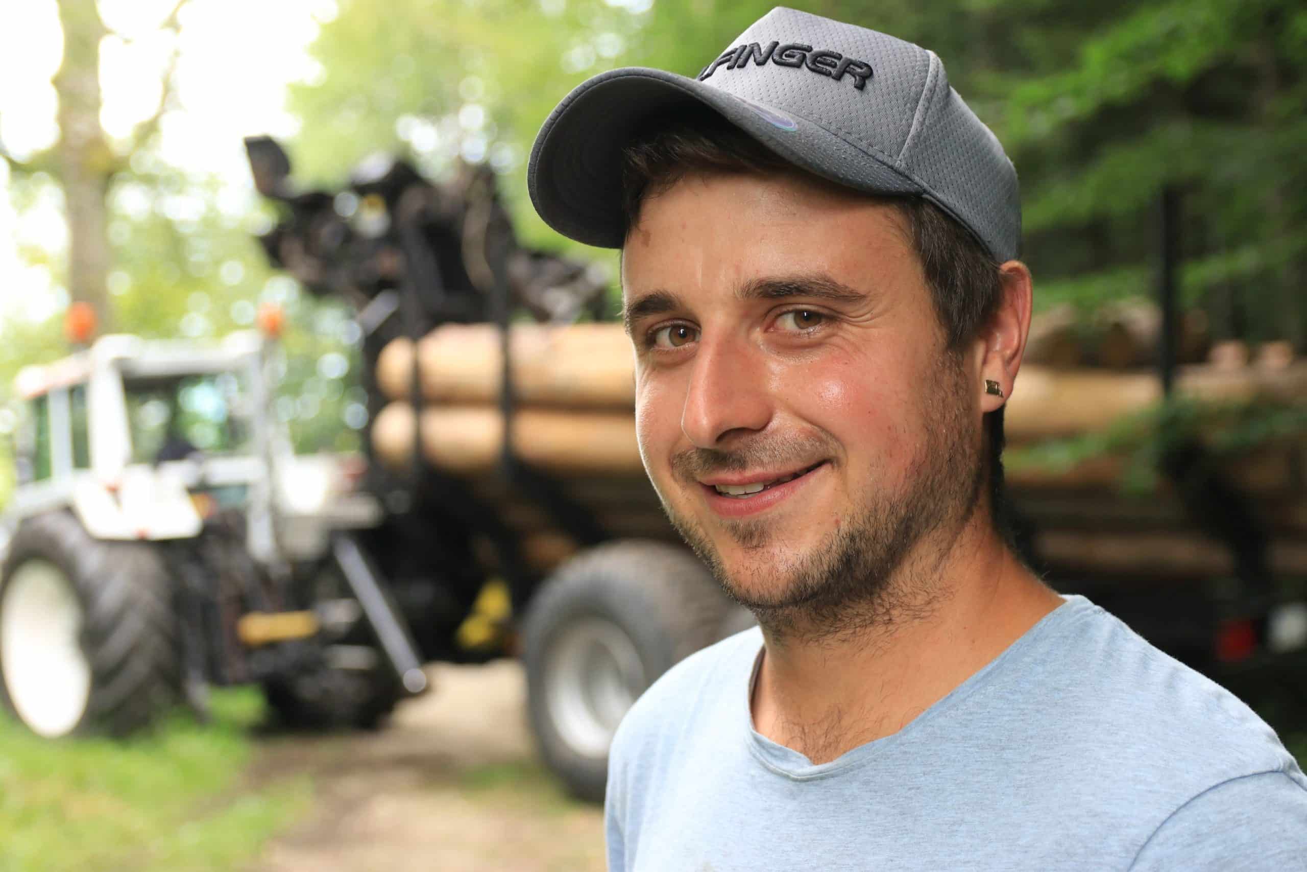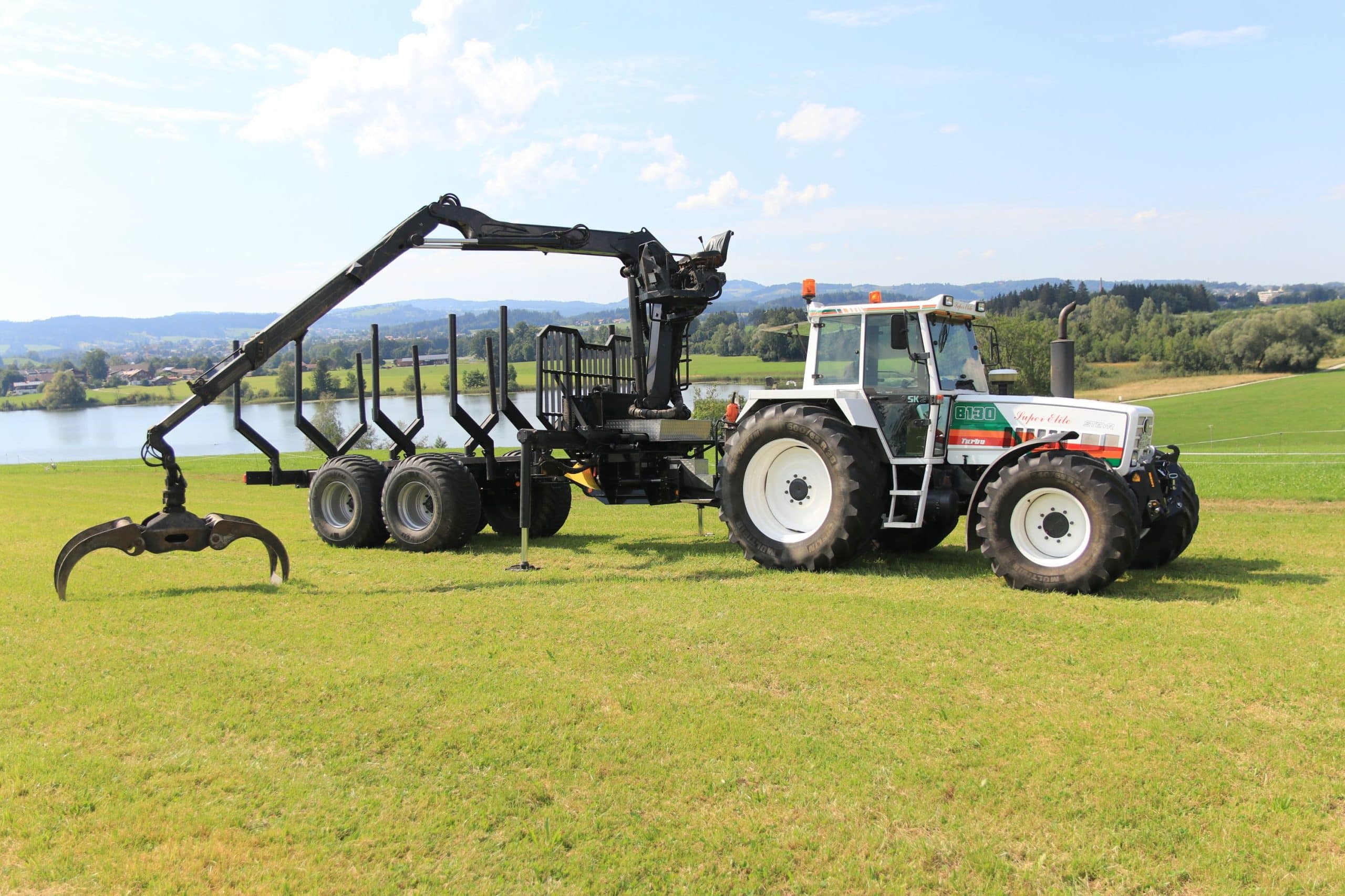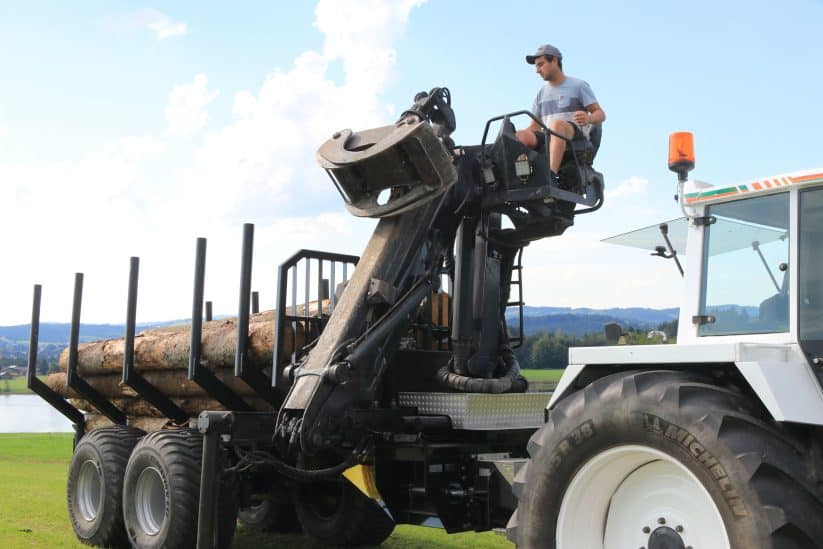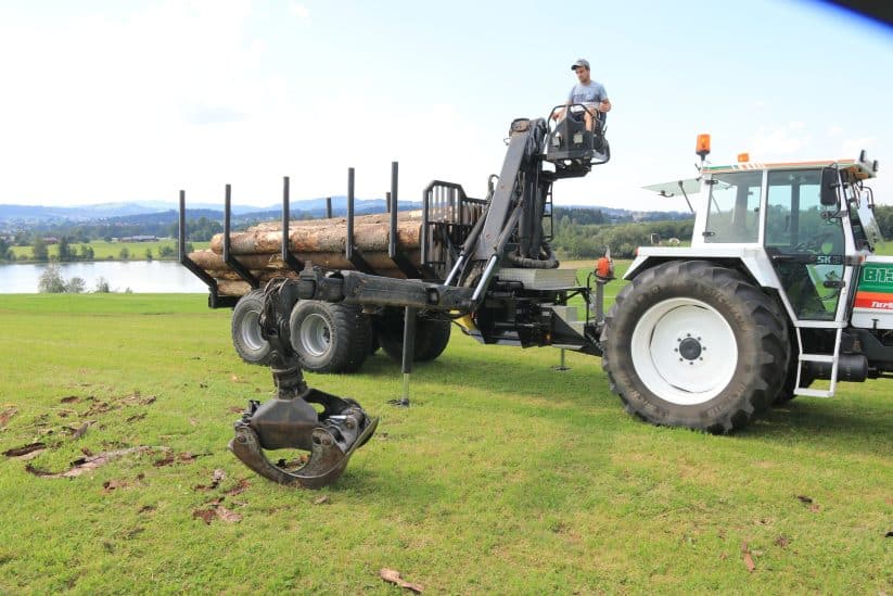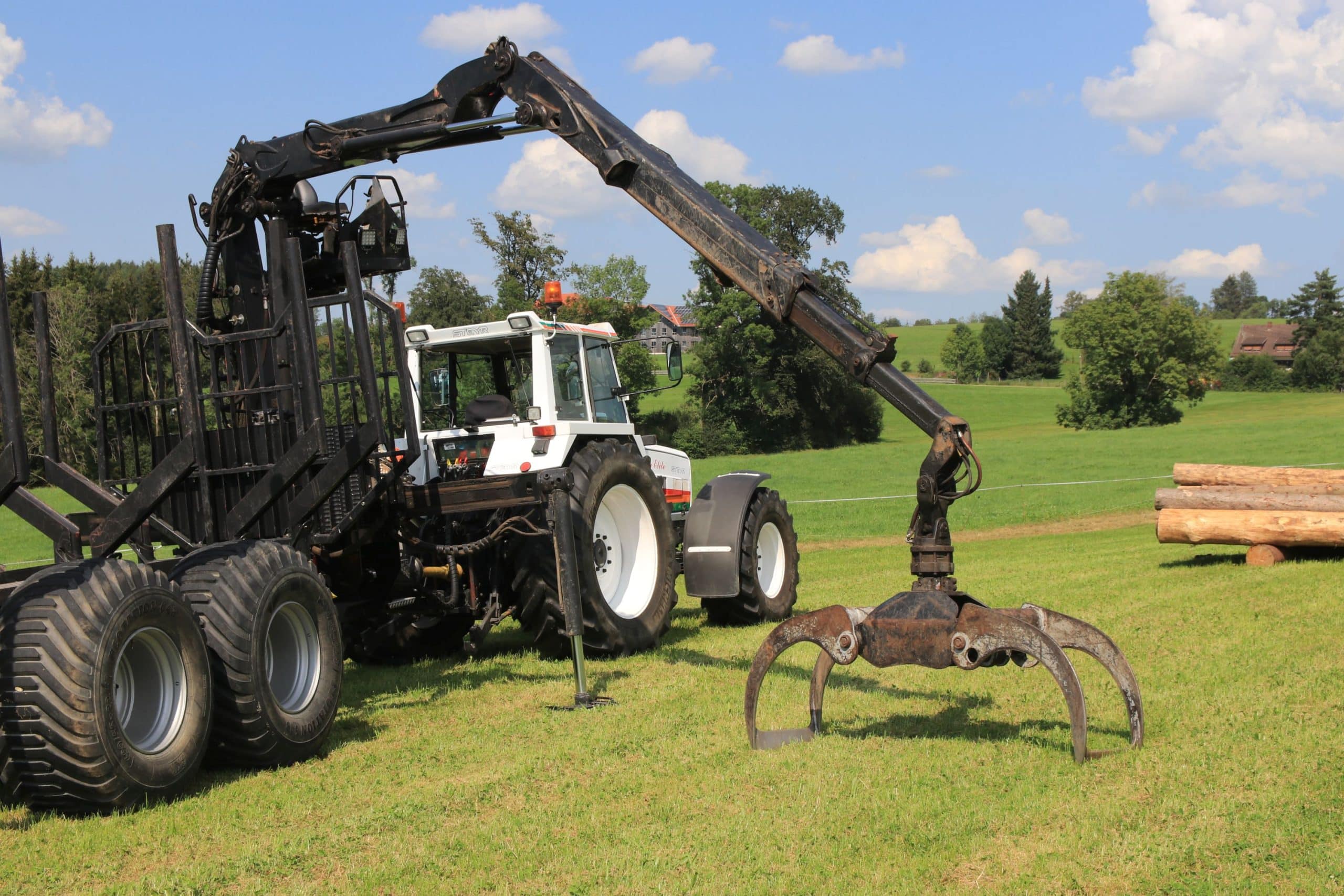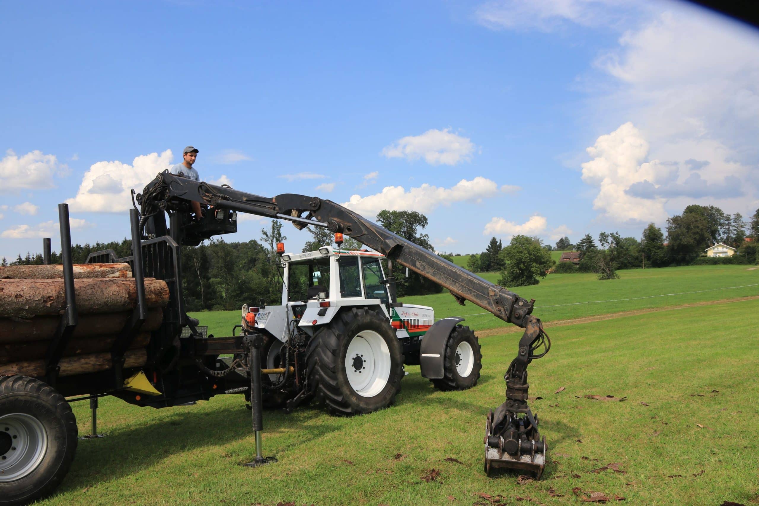 Der Bedarf an einem eigenen Rückewagen entstand bei Maximilian Bertele über Umwege. Der Landwirtschaftsmeister betreibt zusammen mit seinen Eltern und seiner Freundin einen Milchviehbetrieb in Sulzberg, Allgäu. 2020 hat die Familie ein kleines Nahwärmekraftwerk mit Hackschnitzelheizung gebaut, das neun Wohneinheiten versorgt. „Früher haben wir das Holz mit dem Frontlader auf den Kipper geladen und heim transportiert. Für größere Mengen war das aber unpraktisch“, blickt Bertele zurück. Dann folgte die Idee, sich einen Krananhänger zuzulegen. Doch gute gebrauchte Rückewagen in seiner Wunschausstattung gab es nicht.