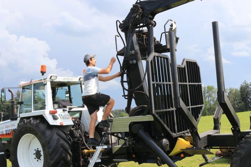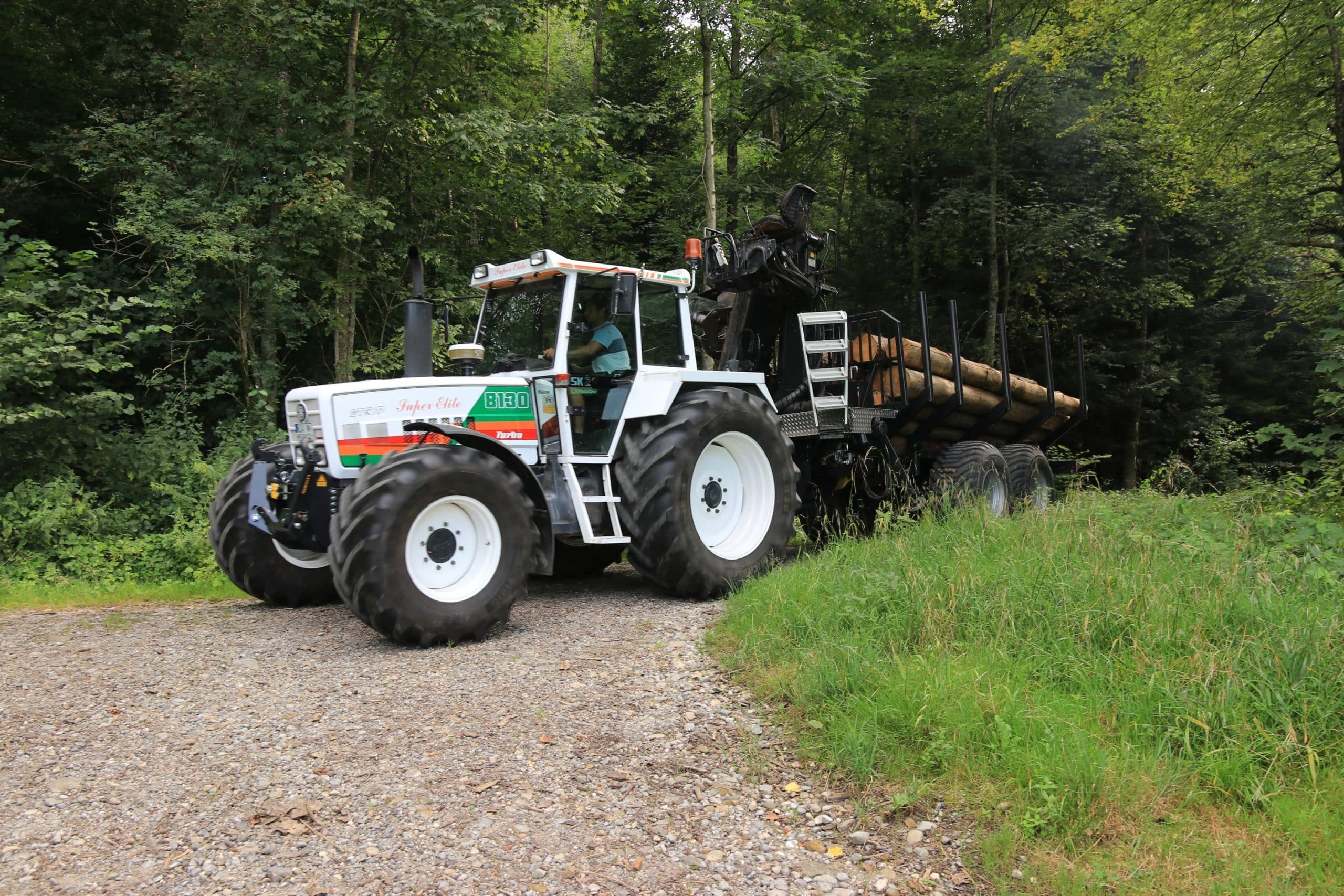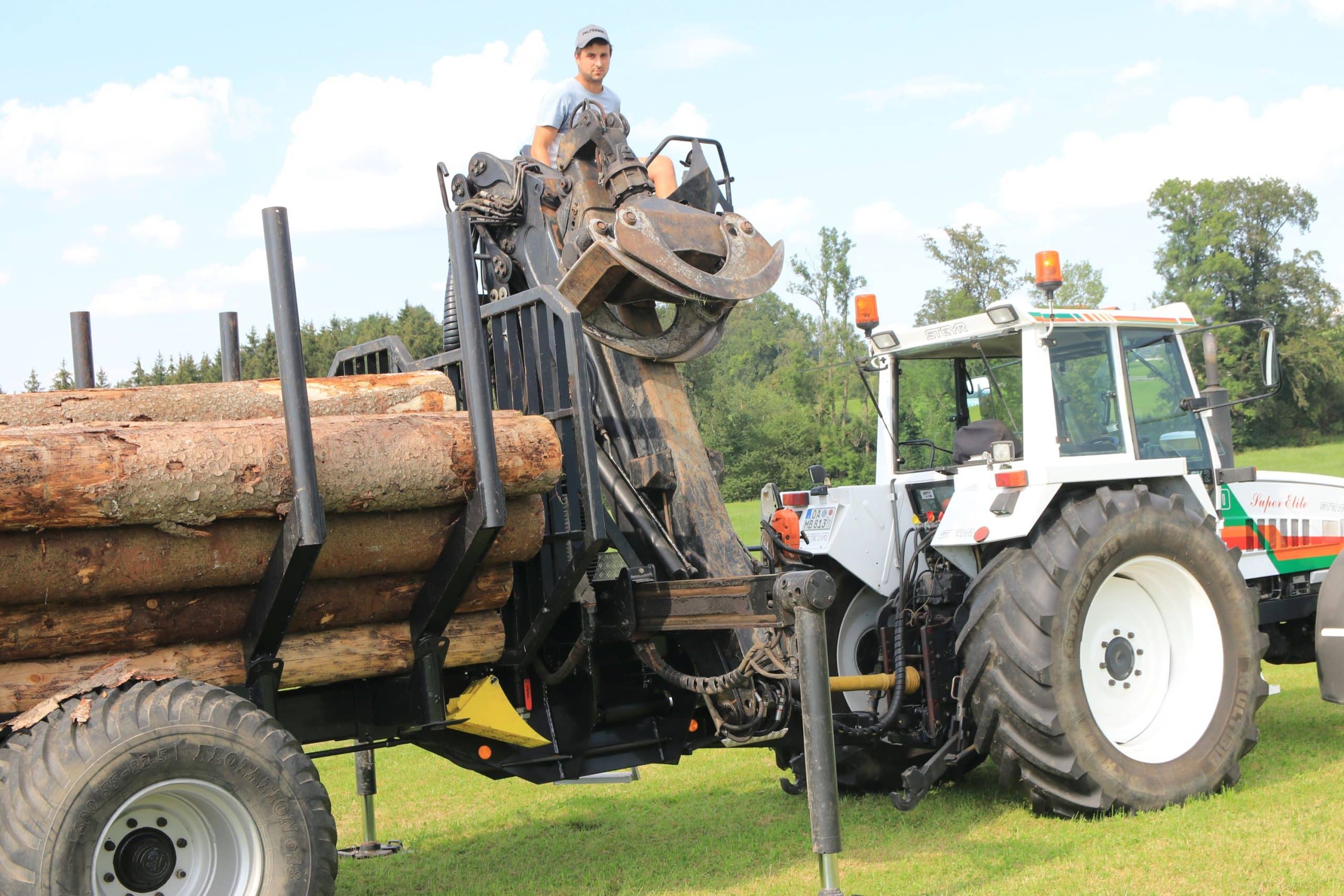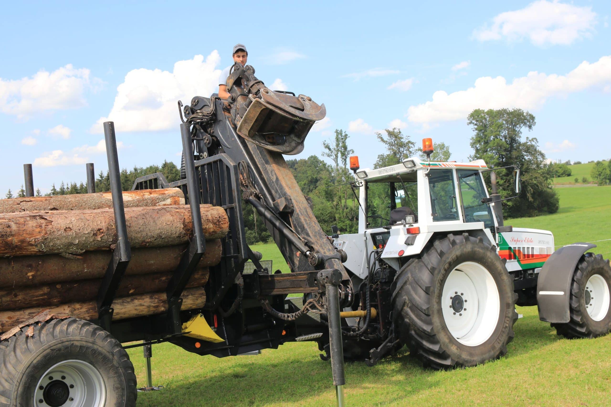 Eine Besonderheit ist auch das Zugpferd vor dem Rückewagen von Maximilian Bertele. Der Steyr 8130 SK 2 aus dem Baujahr 1993, mit Erstzulassung in 1994, gilt seit gut einem Jahr als Oldtimer. Der Traktor hat jetzt über 11.200 Stunden auf der Uhr. Am 120 PS starken Sechszylinder gefällt Bertele auch der Klang: „Es ist immer cool, wenn der Turbo pfeift!“
