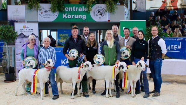 Etwa 100 Züchter und Freunde des Krainer Steinschafs weilten am Samstag, den 11. Oktober 2025 im Kärntner St. Donat, um die zentrale Jungwidderkörung samt Versteigerung zu verfolgen. Zum Körungssieger erkoren wurde ein vom steirischen Einsteigerzüchter Maximilian Glanz aus Kapfenstein gezogener Widder, der durch viel Typ, Harmonie, mittleren Rahmen, Mischwolle und sehr korrekte Fundamente überzeugte. 1. Reservekörungssieger wurde ein Bock vom Millstätter Klaus Ecker, den zweiten Reservesieg holte sich Züchter David Wedenig. Auf den Plätzen 4 und 5 folgten Böcke von Franz Kainz und von Barbara Soritz. Bei der anschließenden Auktion wurde der Körungssieger und ein weiterer Bock um 1.000 Euro versteigert. Die Preise für die weiteren 1 b Böcke lagen zwischen 500 und 900 Euro.