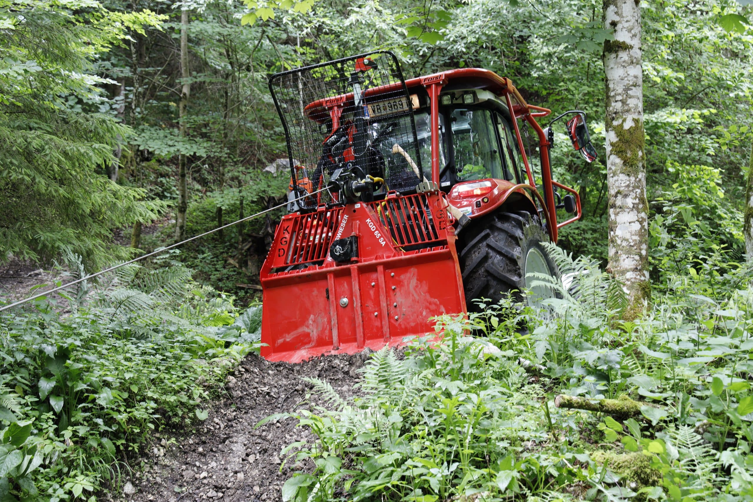 Bei den ersten Prüfungen, direkt nach dem freiwilligen verlängerten Dauerbelastungstest, lagen die Zugkräfte der Königswieser Seilwinde unter den Herstellerangaben, die Bremskräfte nur geringfügig darüber. Die Überschneidung zwischen Kupplung und Bremse war zunächst minimal. Nachdem der Hersteller aber nachjustiert hatte, lagen alle Werte innerhalb der vorgegebenen Toleranzen. Die Seilwinde kann man mit Kat. I- oder II-Unterlenkern anbauen. Am Oberlenker stehen zwei Anbauhöhen zur Verfügung; bei montierter Hilfsseilwindenhalterung entfällt eine dieser Positionen. Die Unterlenkeraufnahme bietet je vier Positionen in zwei Breiten- und Höhenvarianten, die man optional durch Verlängerungen ergänzen kann. Die seitlichen Stützfüße sind robust ausgeführt und lassen sich leichtgängig verstellen.