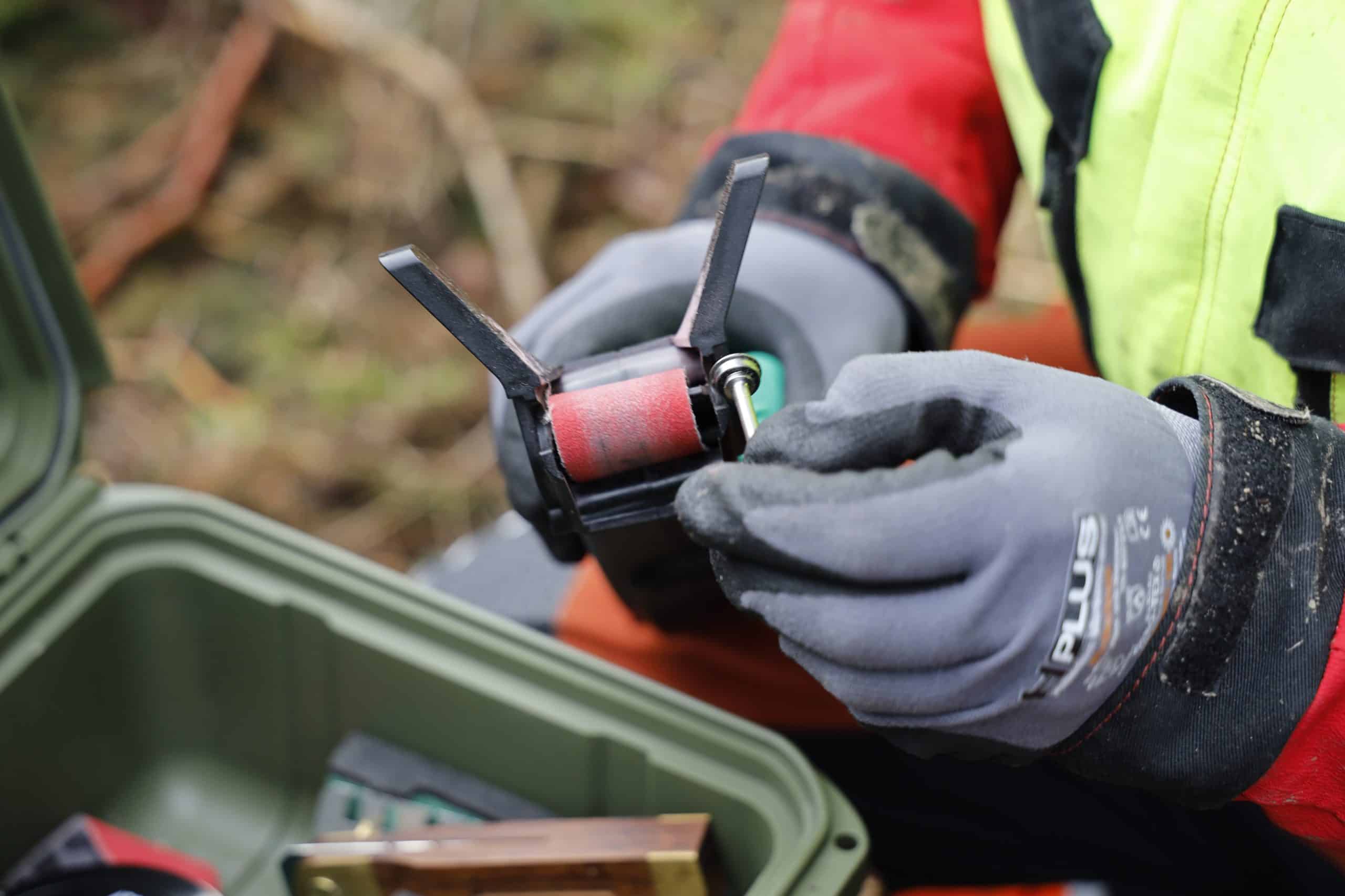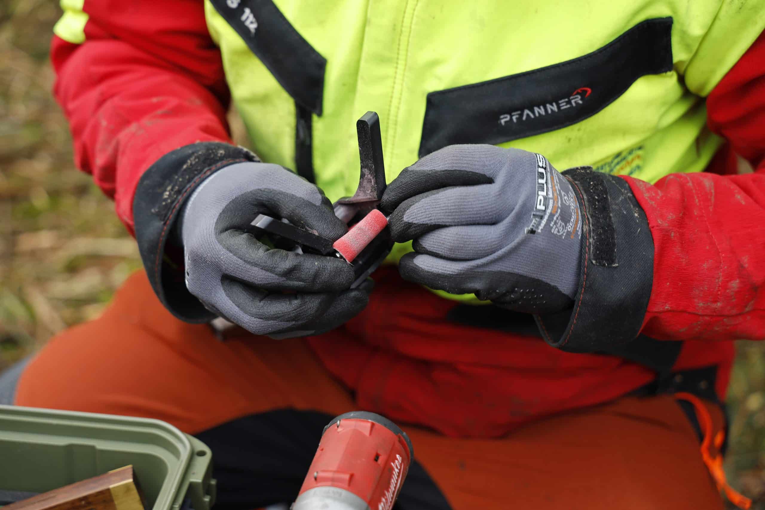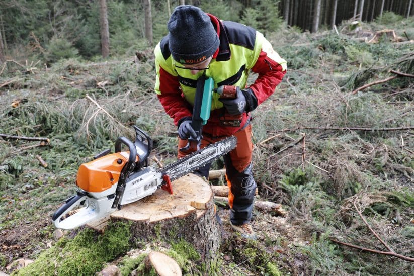 Das Sägekettenschärfgerät Schleiferl kann in der Werkstatt oder während der Arbeit im Wald zum Einsatz kommen. Profianwender im Gebirgswald haben meist auch das Schärfgerät am Forstgürtel umgehängt. Dafür ist das Schleiferl aber zu groß und zu schwer.