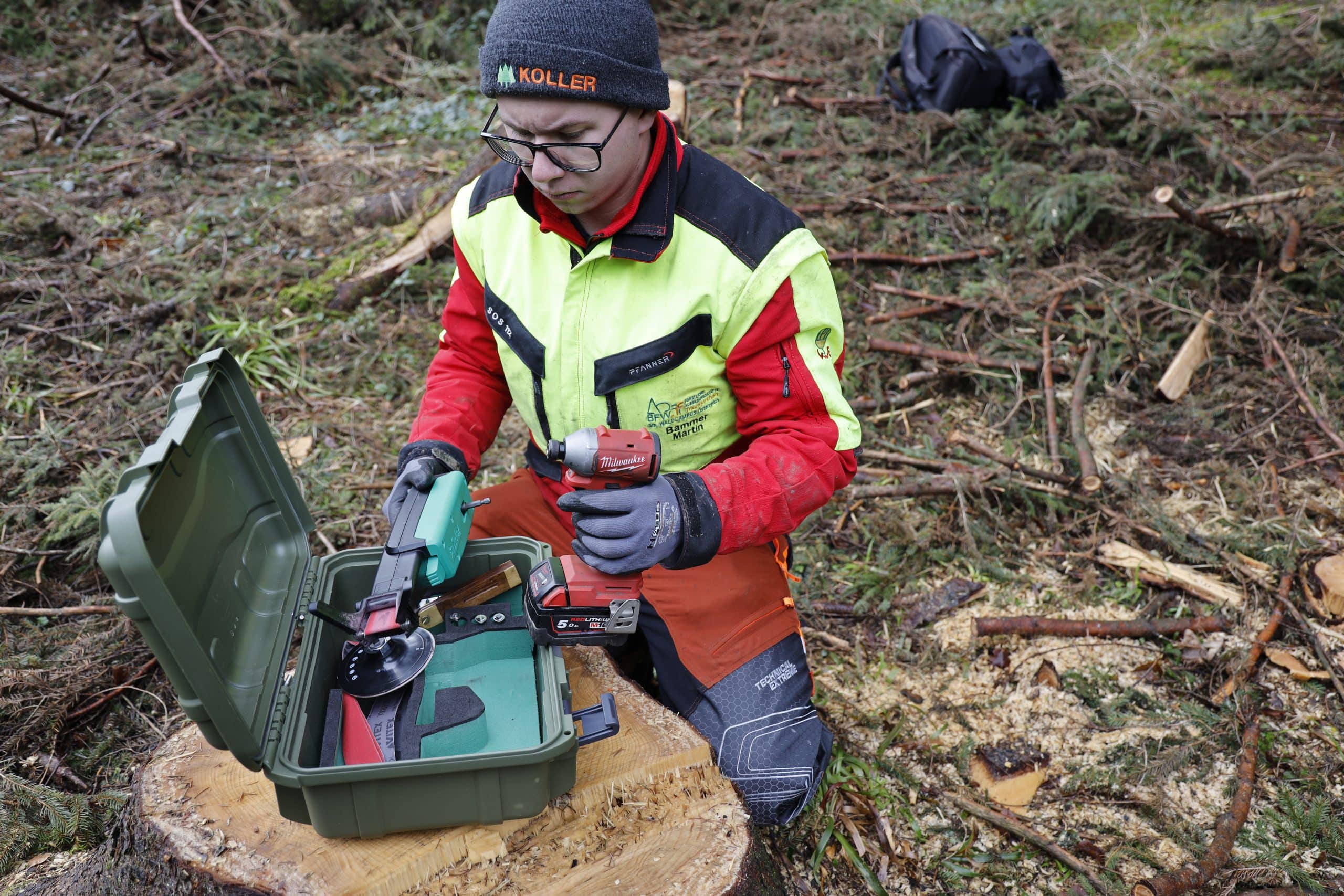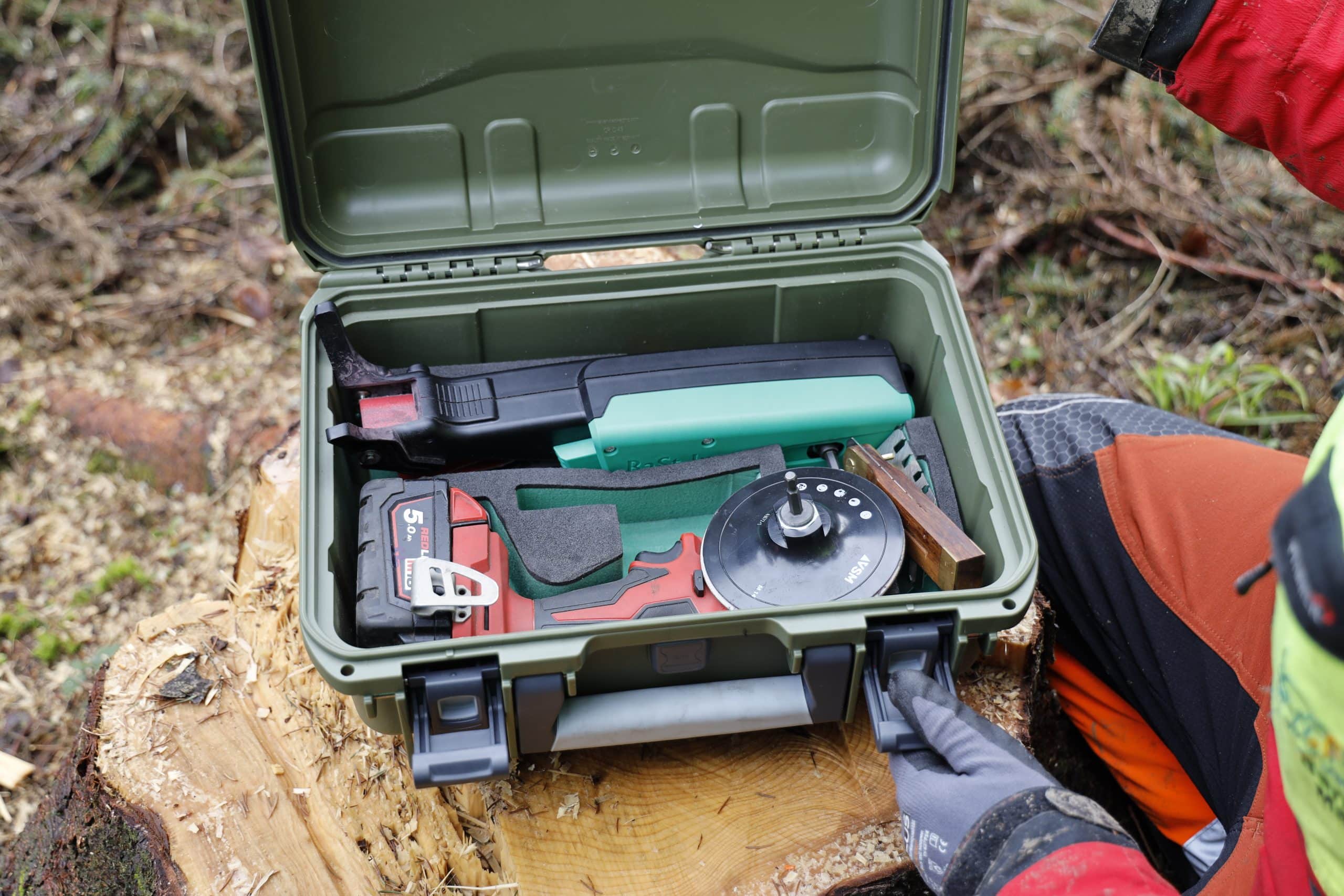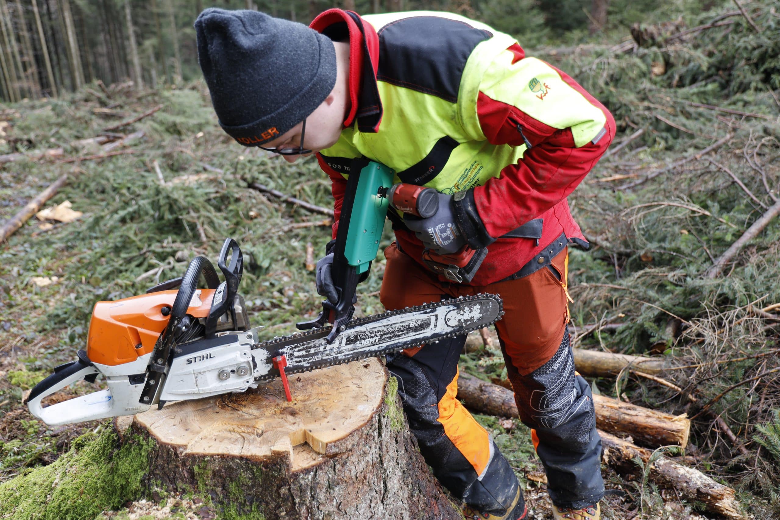 Das Sägekettenschärfgerät Schleiferl kann in der Werkstatt oder während der Arbeit im Wald zum Einsatz kommen. Profianwender im Gebirgswald haben meist auch das Schärfgerät am Forstgürtel umgehängt. Dafür ist das Schleiferl aber zu groß und zu schwer.